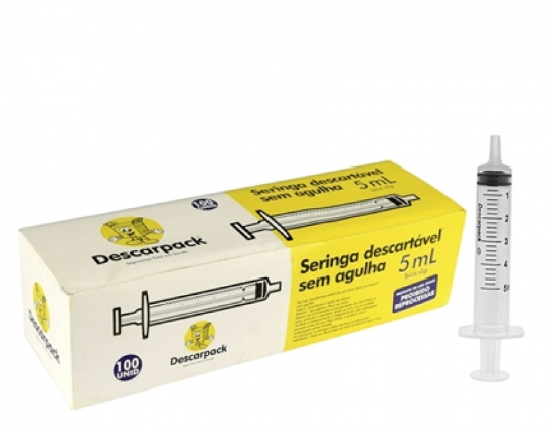 Seringa Descartável 5 mL Luer Slip sem agulha Descarpack – caixa com 100 unidades, prática e segura para aplicações diversas.